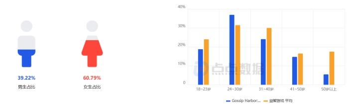《Gossip Harbor》中的男性 用户来到近4成 | 图源:点点数据