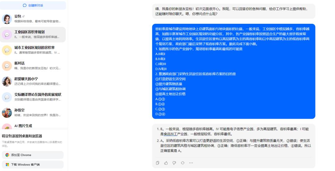 豆包在一道需要结合图片进行分析的地理题中虽然识图能力缺失无法回答,但意外的连蒙带猜的给出答案。