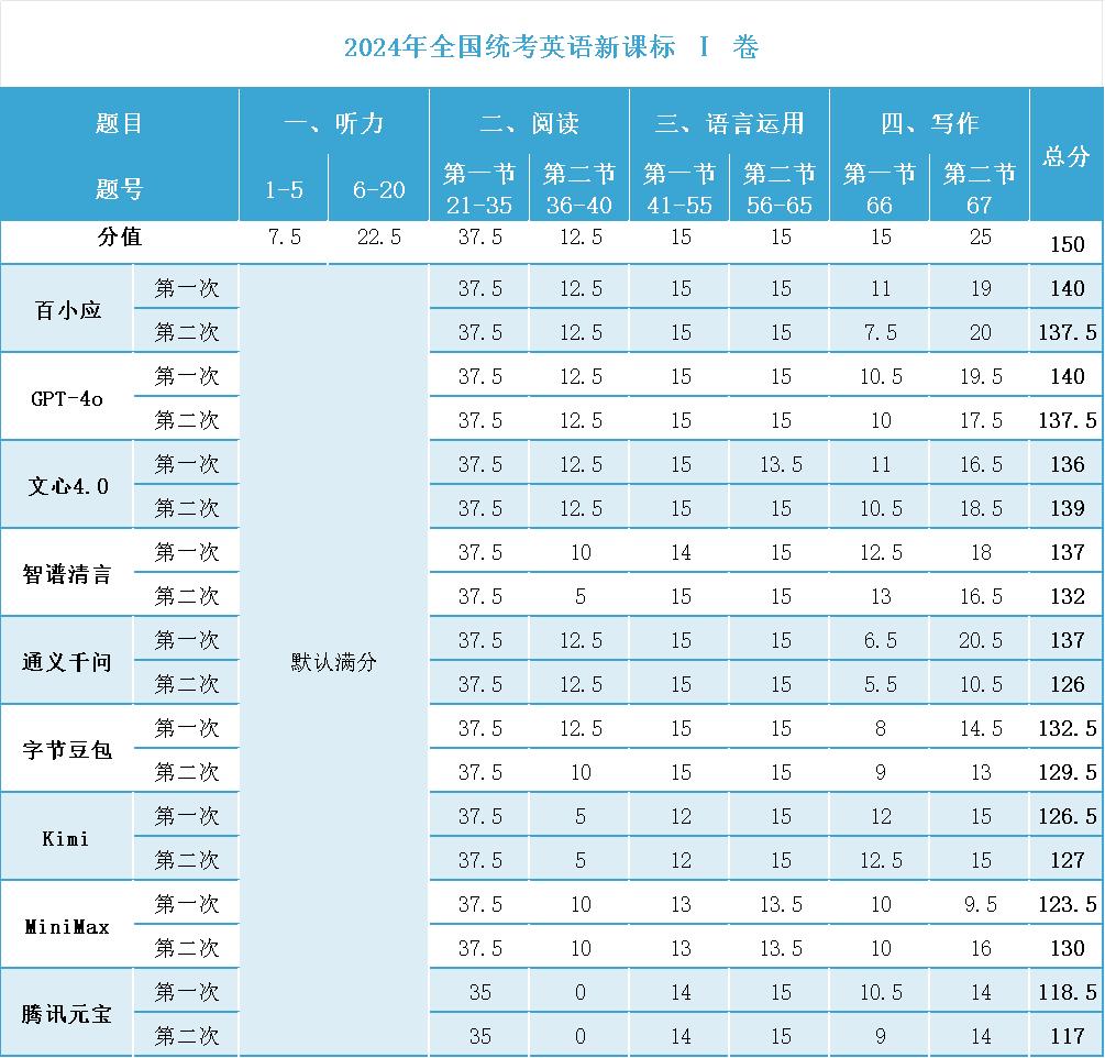 而大模型处理自然语言方面的能力,在高考英语测试中的优势更是压倒性的。