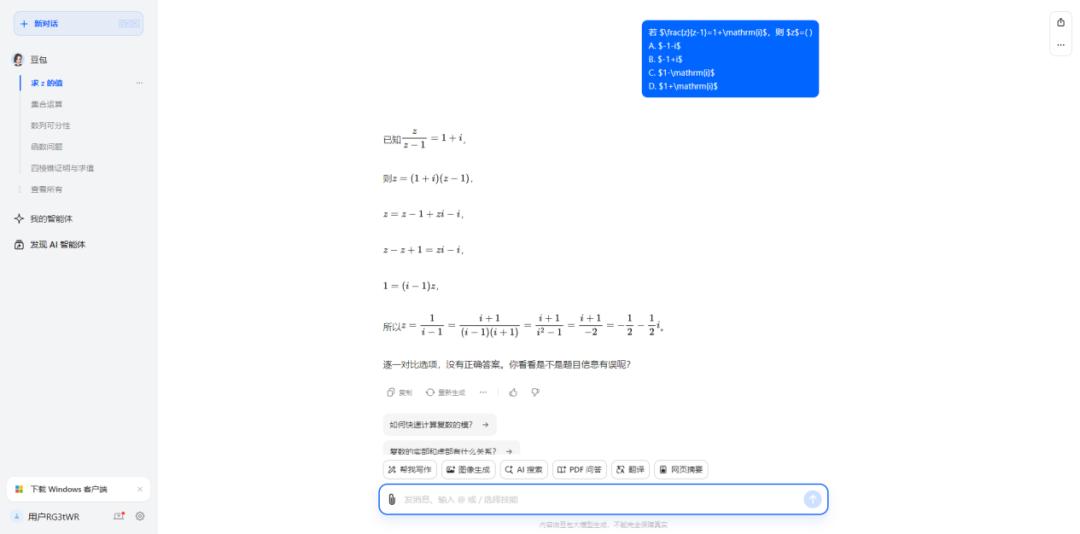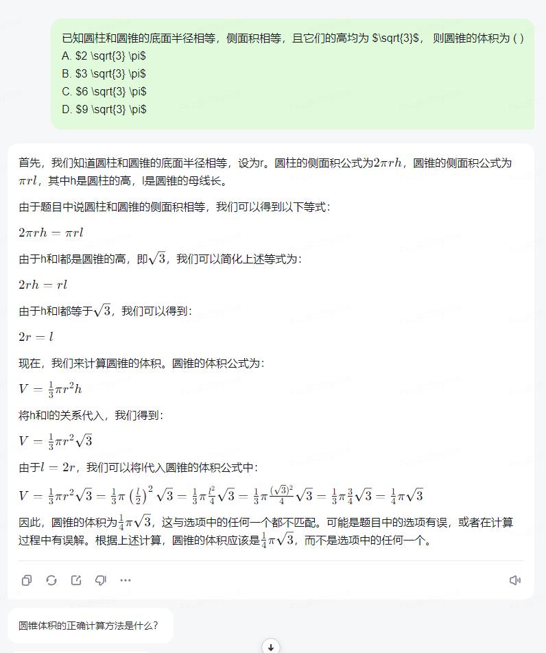 首先,大模型不是不能解数学题,但仅限于推理步骤相对简单的问题。例如豆包在求导题目和三角函数题上表现较好,能正确运用求导公式和三角函数定理。但是对较为复杂的推导和证明问题就很难继续得分。