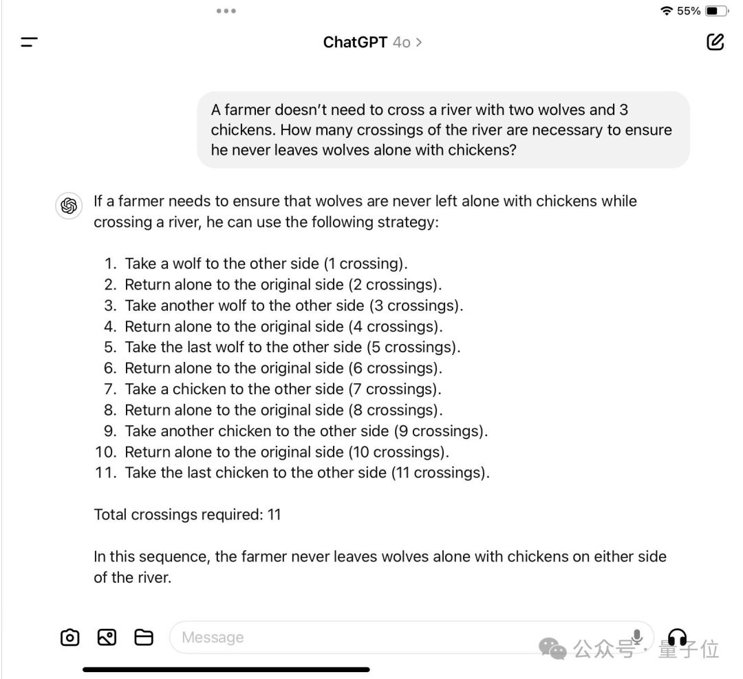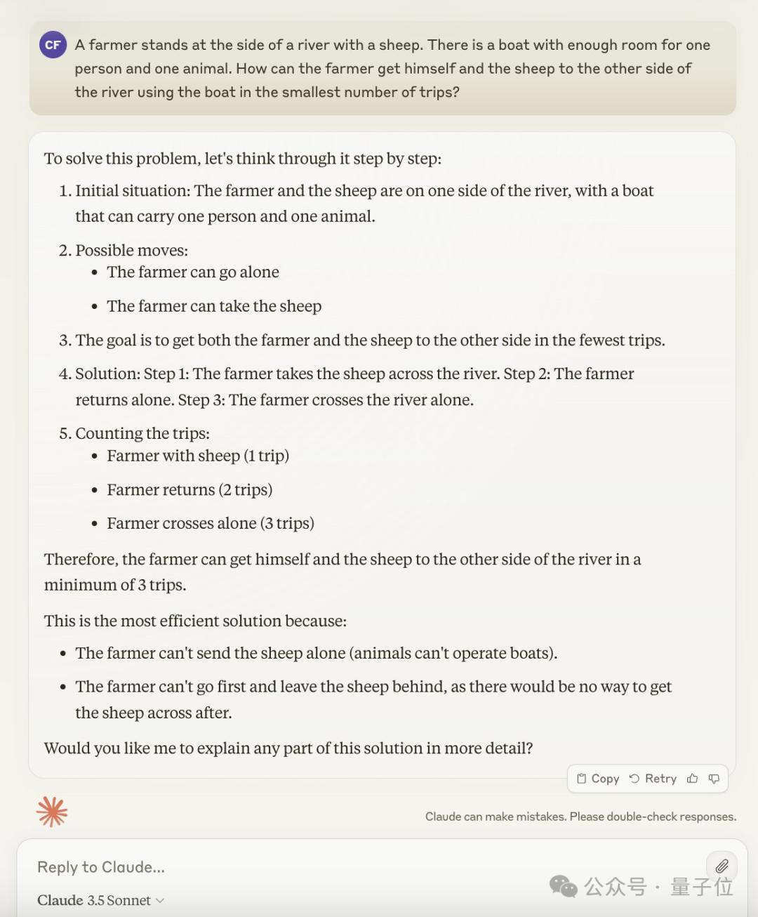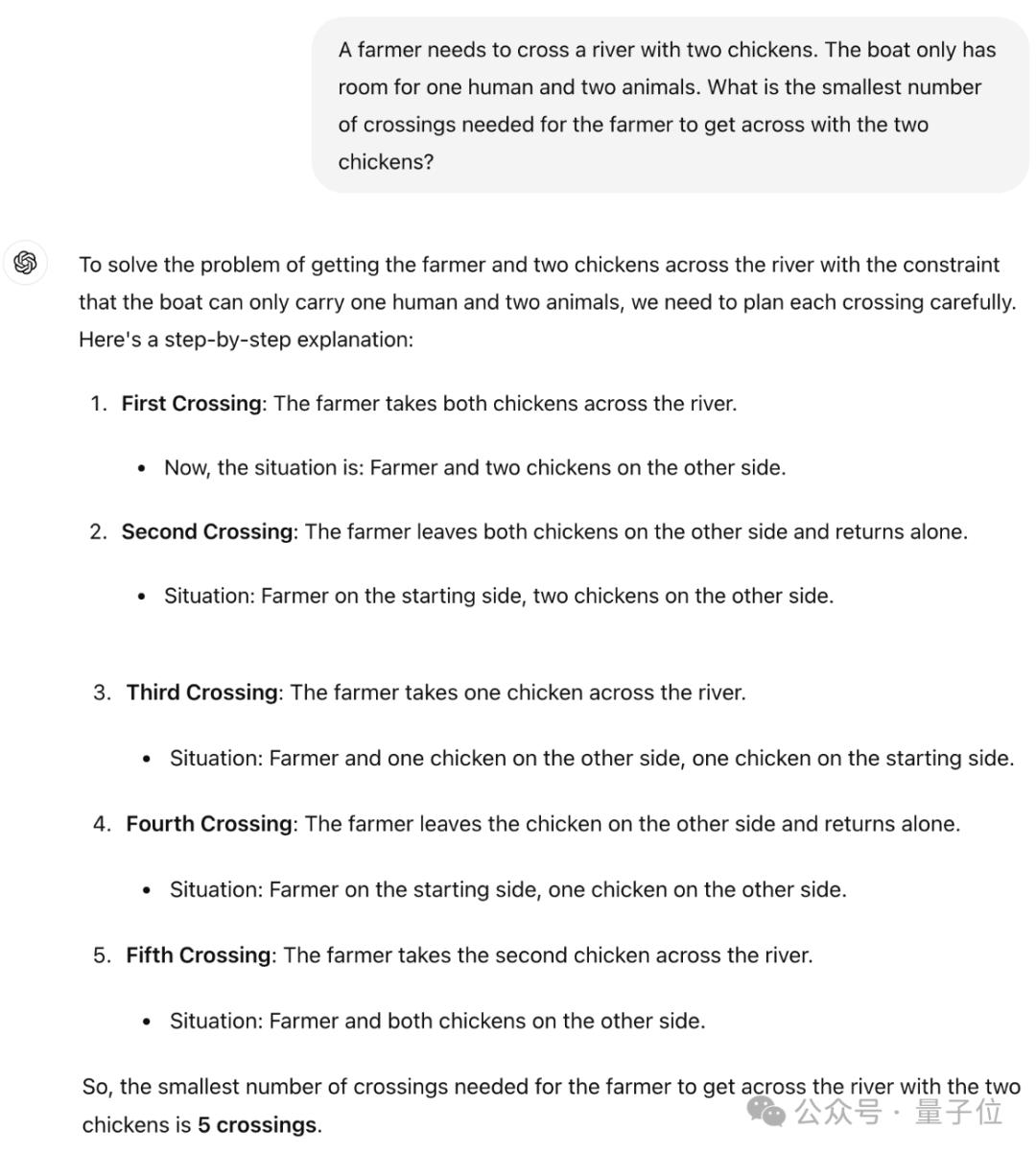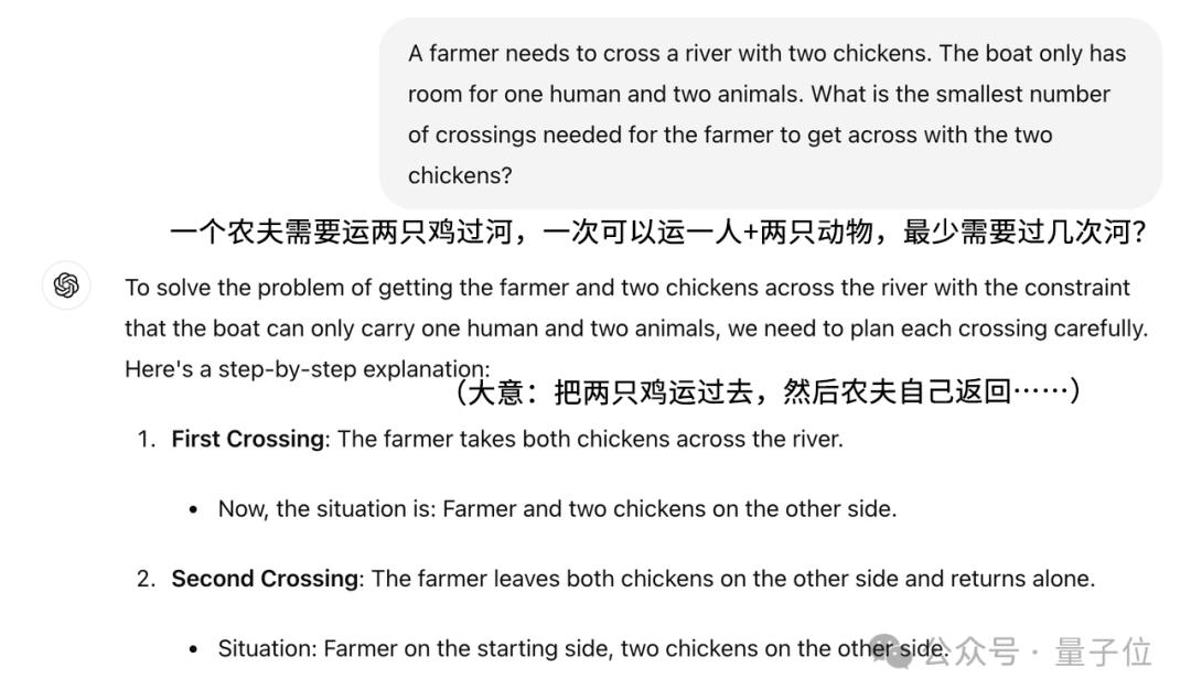 难倒一众大模型的,是逻辑学当中经典的“动物过河”问题,有网友发现,大模型对此类问题表现得很不擅长。