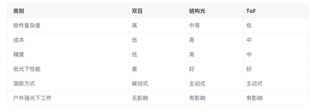 目前,构建3D摄像头拥有三类主流技术——双目、结构光、ToF,三种技术在基础原理和成本、精度上存在很大差别。
