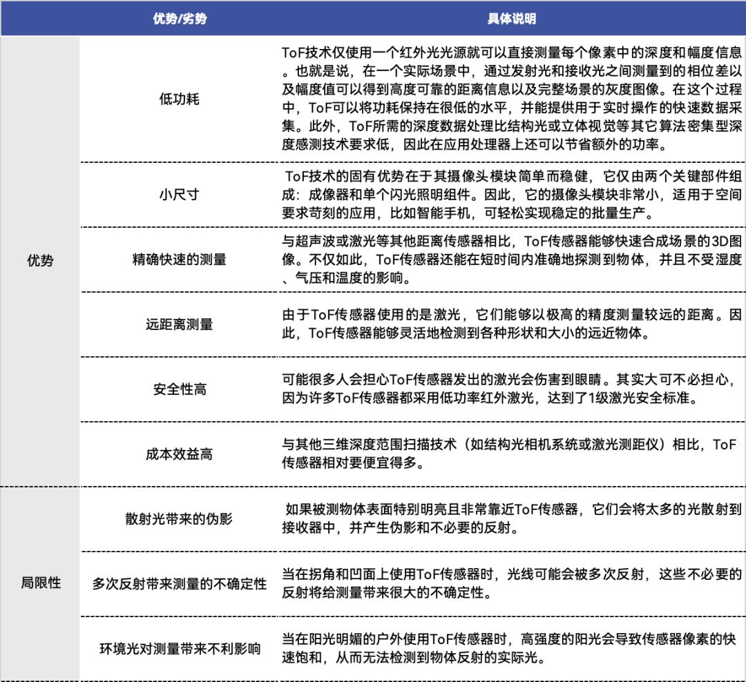 任何一项技术都会有其独特的优势,也会存在一些不足,ToF亦如此。其优势在于低功耗、小尺寸、精确快速的测量、远距离测量、安全性、成本效益上,但也受到散射光、环境光、拐角凹面的影响。