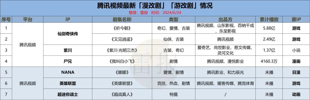 值得一提的是,在IP改编真人剧的储备上,腾讯依旧相当能打。