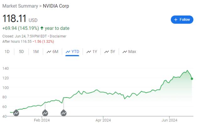 这种乐观并非没有根据。目前,英伟达在数据中心的AI芯片市场约占80%的份额,像OpenAI、微软、Alphabet、亚马逊、Meta等科技巨头都在争抢其处理器以支持他们的AI模型。且尽管有所回调,在AI热潮的推动下,英伟达今年以来的累计涨幅仍高达145%,带动标普累计上涨14%,创下31次收盘新高。