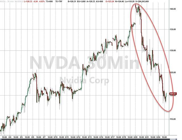 英伟达较周四高点下跌逾16%