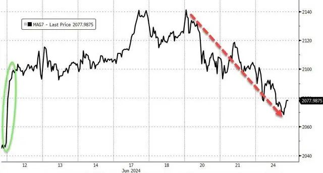 科技股“七姐妹”也脱离阶段高位,几乎回吐月初CPI数据公布以来的所有涨幅。