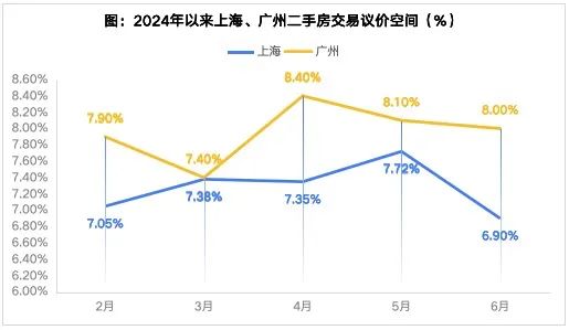 上海表现的最靓眼,今年以来议价空间首次收缩至6%。在深圳,5月13日以来的四周(5.13-6.09),深圳挂牌二手住房调价房源中,调涨占比分别为19.1%、16.0%、16.3%和16.7%。