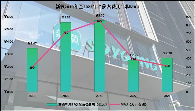 2019年至2021年期间持续投入大量的营销费用获取流量,但是到2022年大幅减少支出之后平台MAU迅速“水跌船低”,而2023年再次加码投入却依旧止不住MAU的下滑。