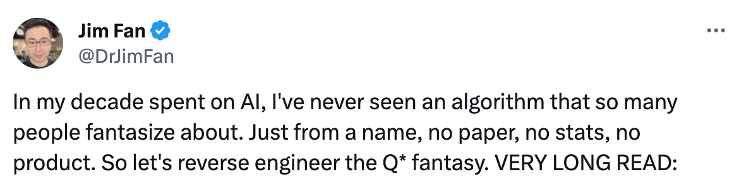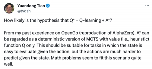 (Meta科学家田渊栋则认为Q*是Q-learning和A*的结合,且天然地适合推理任务,尤其在数学推理方面)