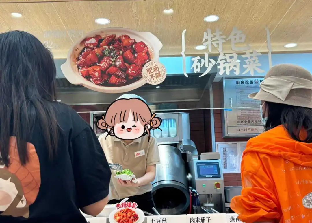现蒸的包子不稀奇,那些盘子里的菜也确实是现炒的,不是“大厨开着猛火灶,一手倒出半斤宽油一手举着铲子花式颠勺”的现炒,准确来说是炒菜机和员工一起“搅拌”。但在北京商场吃顿现炒工作餐,还要啥自行车。