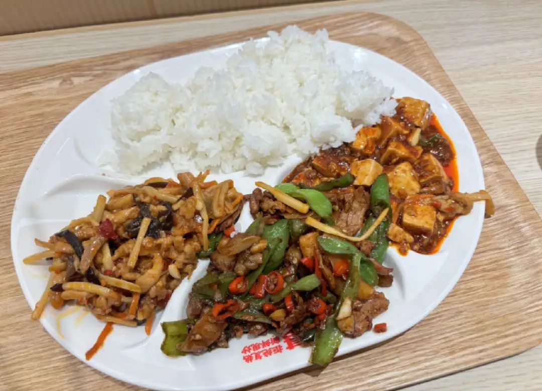 我花了20.1元购买两荤一素后竟然发现,带肉的麻婆豆腐算是素菜,可见“吃饭贵不贵”这事儿也有地域差别,乡村基到了北京显然还算是合格的白领大食堂。