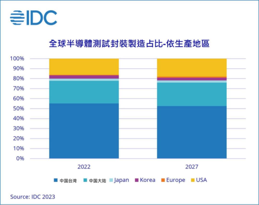 此外,在封装测试方面东南亚也开始崛起,抢占中国台湾份额,尤其是马来西亚和越南。据IDC预测,东南亚在全球半导体封装测试中的份额将在2027年达到10%,而中国台湾的份额将从2022年的51%下降至同年的47%。