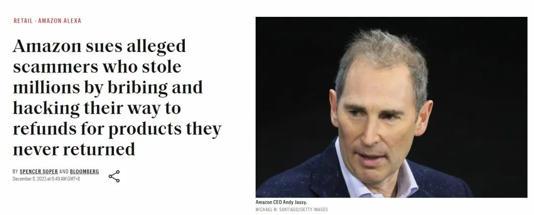 2023年12月,亚马逊将一个名为“REKK”的组织告上法庭,原因就是该组织在Reddit和Discord等社交媒体网站上售卖“仅退款”教程,手把手教学员在亚马逊网站上购买商品,然后仅退款,获利价值数百万美元。