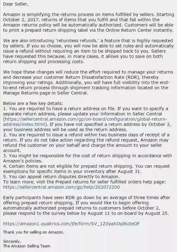 亚马逊给出的解释是,这是卖家需求度很高的意向功能,“卖家要求这样做是因为,在很多情况下,它能够让你节省退货运费和处理成本,并降低客户拖货不满率(RDR),从而提高您的评级。”