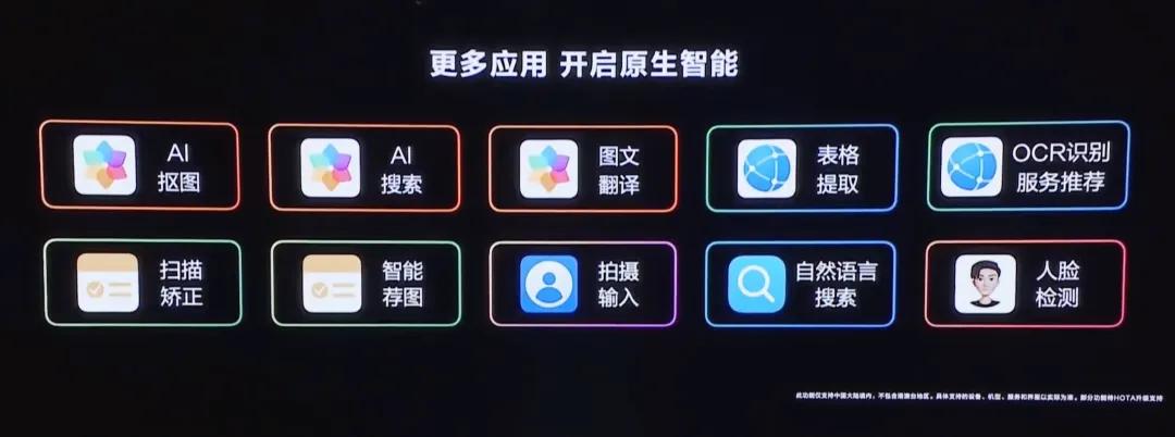 在 鸿蒙 NEXT 中,华为将目前手机端日常常用的 AI 能力以模块的方式进行了整合:包括 OCR 识别、AI 搜索等能力,目前首批鸿蒙应用中,已经能看到不少功能的加入。