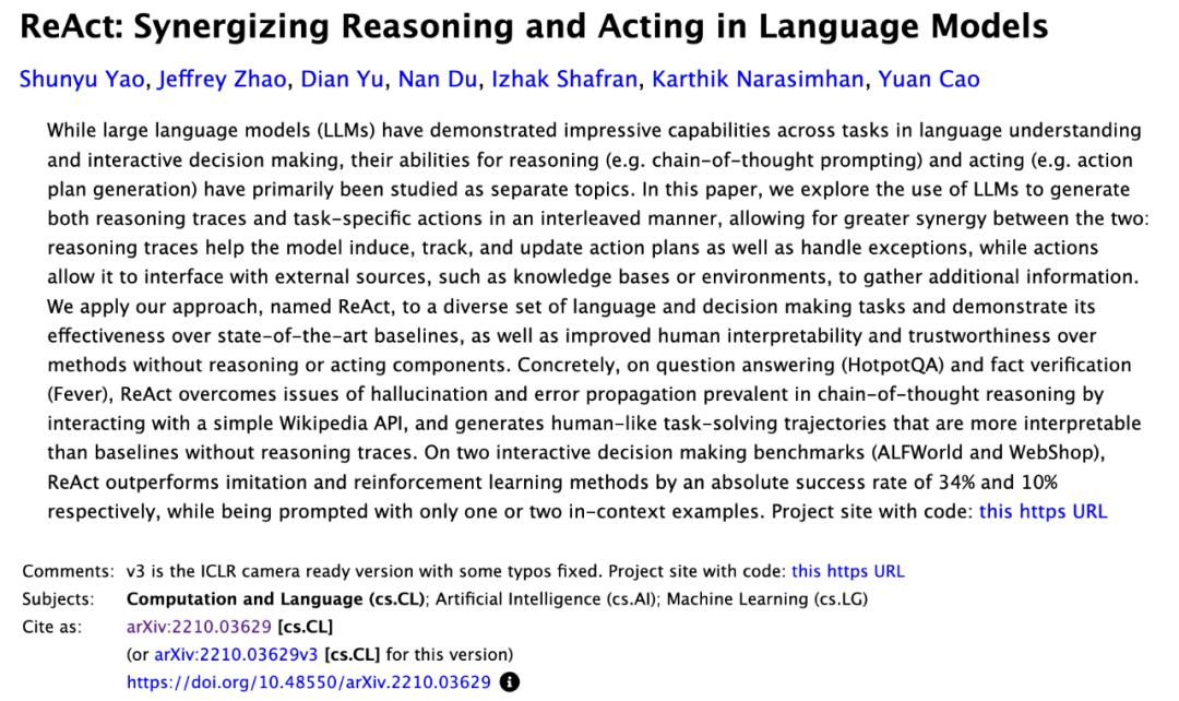 有一篇名为ReAct的论文,它提出了第一种针对智能体的认知架构。它做了两件事:一是让大语言模型预测接下来的行动,二是加入了一个推理组件,这有点像链式思考,但它在每一步之前都加入了一个推理环节。这种显性推理步骤随着模型的训练变得越来越不必要,如同链式思考被训练进模型一样。但即便如此,这种循环过程已经成为ReAct论文的代名词,这也是智能体最初的许多难题之一。