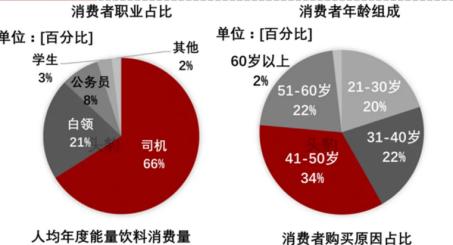一方面,大部分低能量饮料市场已趋于饱和,行业发展第一阶段的渗透率已触及天花板。另一方面,东鹏特饮的核心客户群体——蓝领就业人口正在下降,未来将在存量市场中争夺市场份额。有研究调查显示:当前国内能量饮料消费者主要为司机用户,占总体功能饮料消费用户超过60%,且年龄以41-50岁为主,占比超过三分之一。