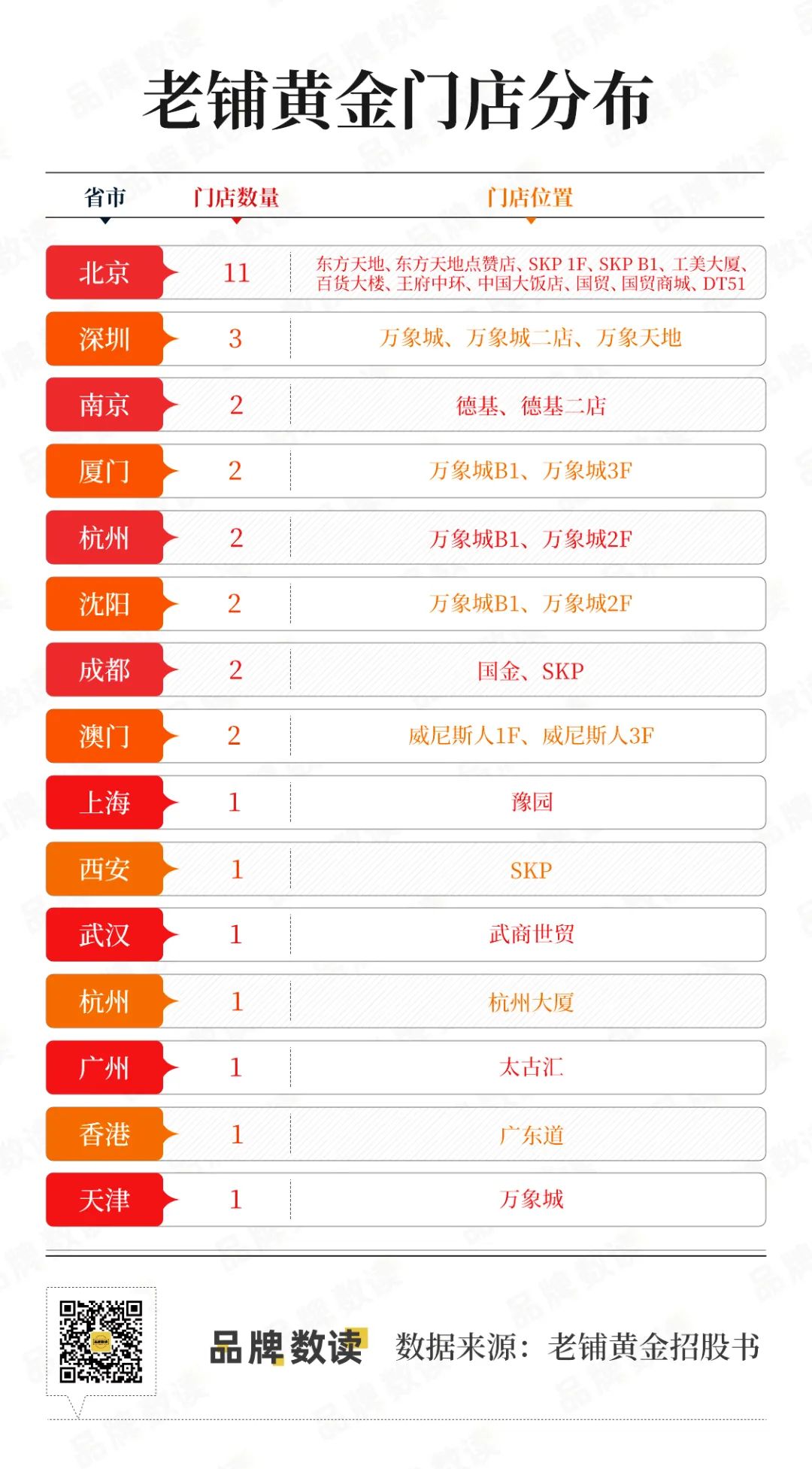 值得注意的是,老铺黄金在多个项目中开设了两家门店,如北京东方天地、南京德基广场、厦门万象城、杭州万象城、沈阳万象城、澳门威尼斯人等商场均在不同楼层开出了两家门店。