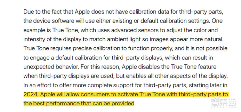 ▲2024年,苹果将允许消费者使用第三方部件激活True Tone,以获得最佳性能(图源:Longevity, by Design白皮书)