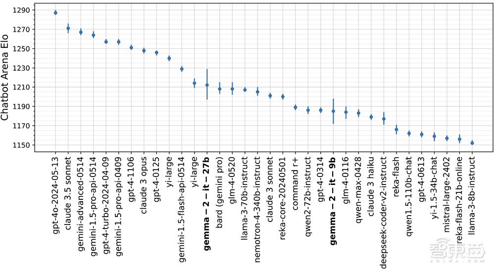 在盲测大语言模型竞技场LMSYS Chatbot Arena中,270亿参数的Gemma 2指令微调模型击败了拥有700亿参数的Llama 3,并超过Nemotron 4 340B、Claude 3 Sonnet、Command R+、Qwen 72B等模型,在所有开源权重的模型中位列第一;9B模型则是当前15B以下参数的模型中成绩最好的。