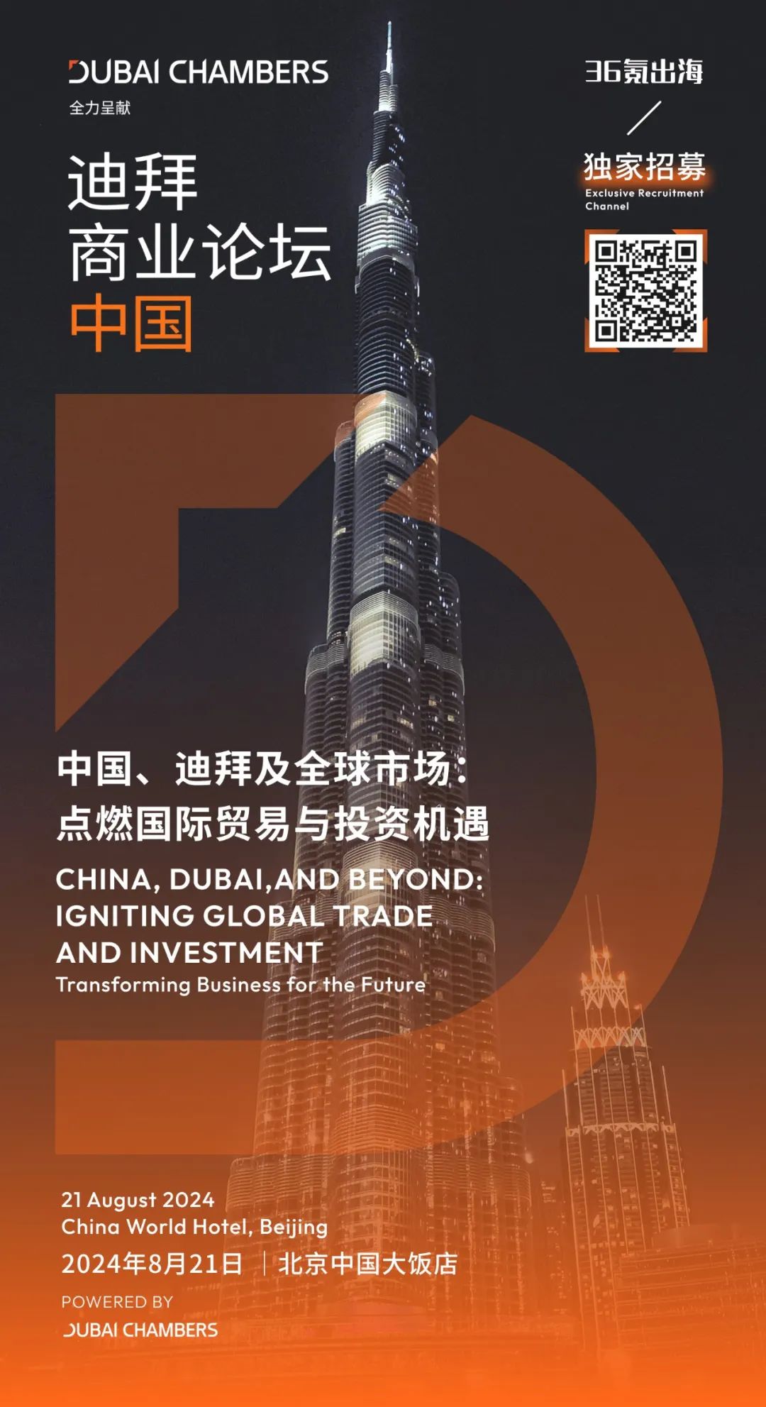 36氪出海是本届迪拜商业论坛中国独家参会渠道和企业对接官方组织单位,负责招募和定向邀请中方参会代表;同时,迪拜高级别代表团将从审核通过的名单中挑选高增长的中国企业,匹配投资合作意向,在大会期间安排线下对接会议。