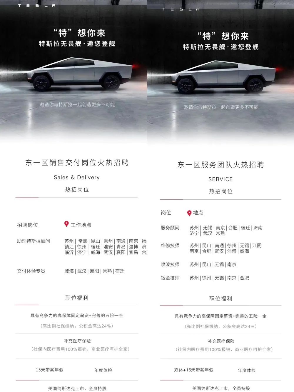 或许以上措施并不足以弥补人力的空缺,前两天,特斯拉也不再遮遮掩掩,直接开启了销售和售后正式岗的招聘,并且给予了非常优厚的薪资待遇,吸引人员来应聘。