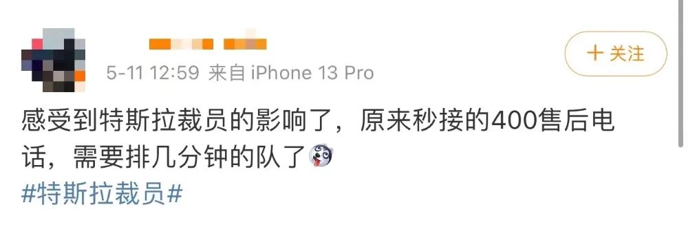 但随着大规模的裁员,特斯拉日常业务也、收到了波及。有博主表示,原来秒接的400售后电话,现在也需要排几分钟的队了。并且还有消息传出,特斯拉裁员没有员工干活后就要求第三方金融单位的人来帮他们做销售和交付,并且没有任何薪酬。