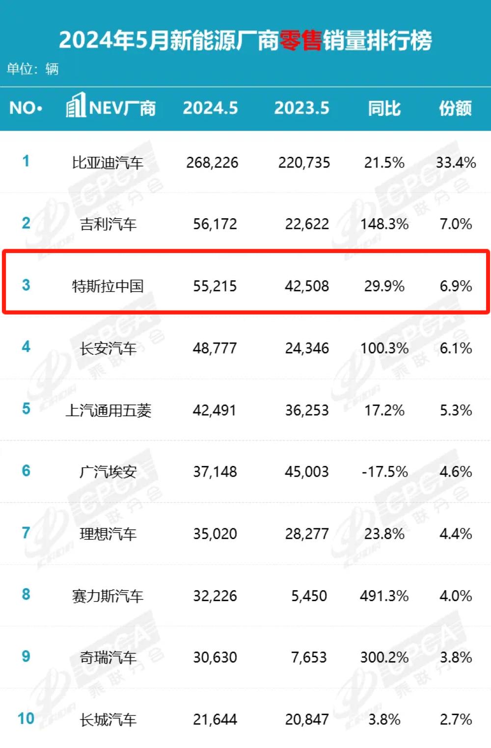 在降价的刺激下,特斯拉中国市场5月销量回暖,乘联会数据显示,特斯拉5月国内销量超过5.5万辆,环比增涨77%,同比增长约30%。