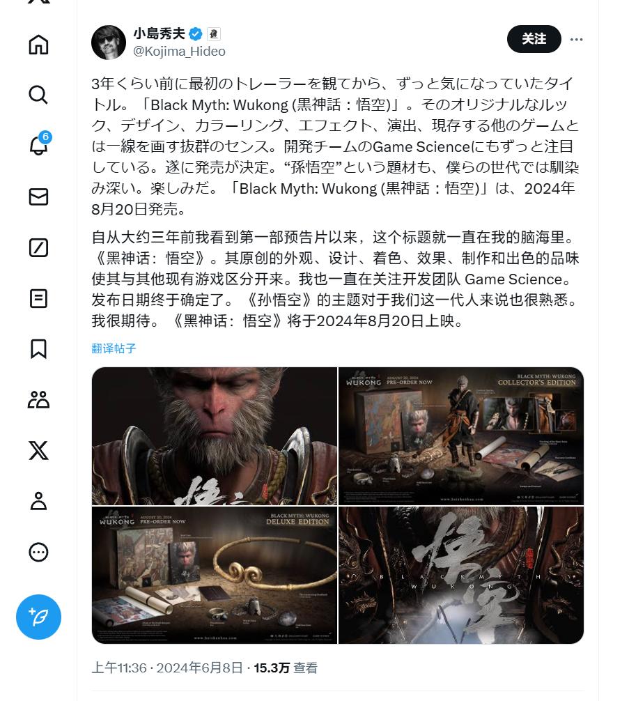 知名日本游戏制作人小岛秀夫社交媒体评价