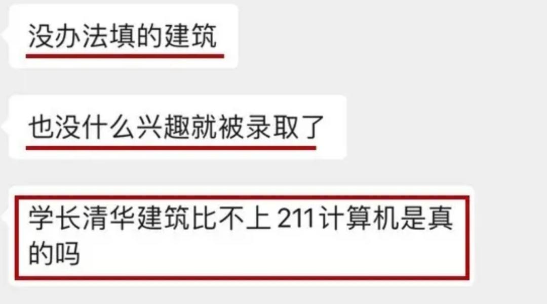 再到今年,知乎建筑领域大V说,收到今年新生提问,被清华建筑录取了,军训还没结束就想跑路怎么办?并且还补充问他,读清华建筑,是不是真的不如去211学计算机……