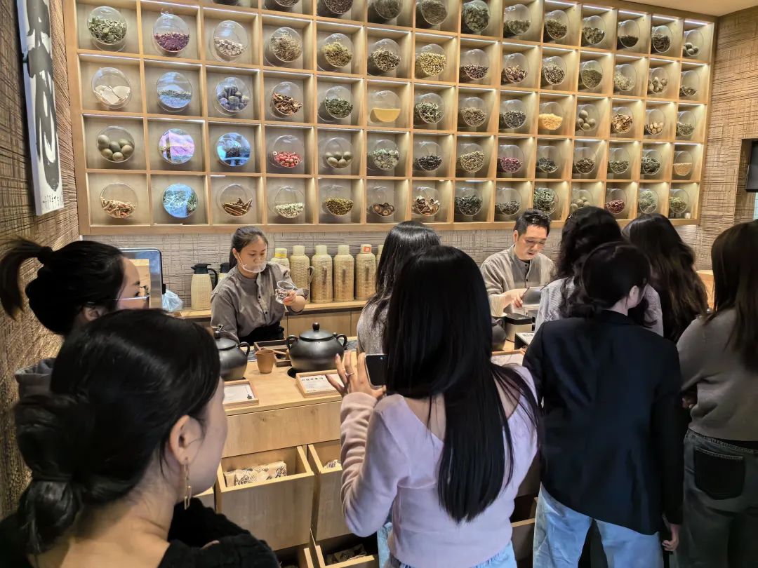顾客点单时,店员会询问顾客对中药材的理解和喜好,然后提供几种试饮,帮助消费者找到喜欢的风味。