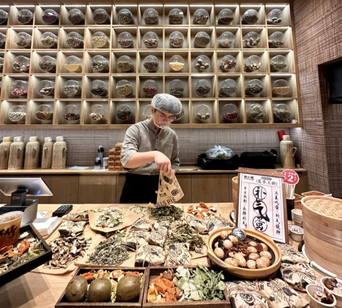门店大约50平,满墙陈列着药食同源的中药食材,店内弥漫着浓浓的中药味,吧台上放着盛放中药纯汤的瓦罐。不少网友评价:“简直是中药铺里的咖啡屋”。