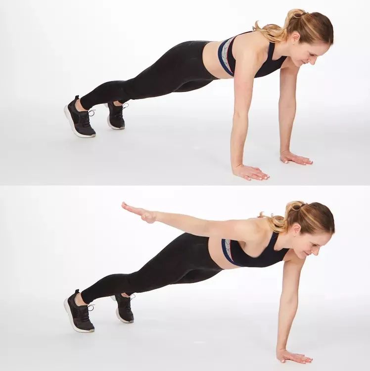 尽可能保持臀部静止,单臂抬起至肩膀高度。