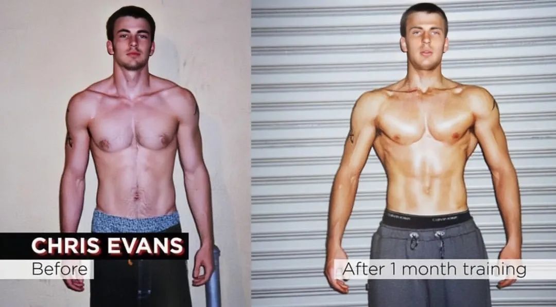 美国队长扮演者Chris Evans一个月训练前后对比,图源:Pinterest