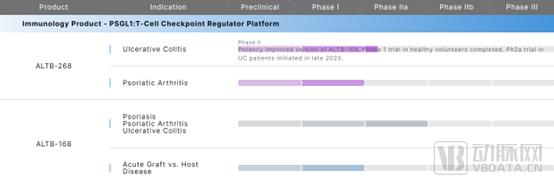 AltruBio前身AbGenomics已有的两种抗体靶向疗法正在针对六个疾病领域进行研发。其中,Neihulizumab是一种免疫检查点激动剂抗体,旨在通过靶向PSGL-1调节T细胞稳态,正在进行两项针对银屑病关节炎和溃疡性结肠炎的2期临床试验。该分子之前还获得FDA快速通道资格,用于治疗类固醇难治性急性移植物抗宿主病。Neihulizumab在2020年以疫情为由终止了一项溃疡性结肠炎试验,但在重启时正在进行一项急性移植物抗宿主病研究(公司网站显示将仍会进行UC的研究)。