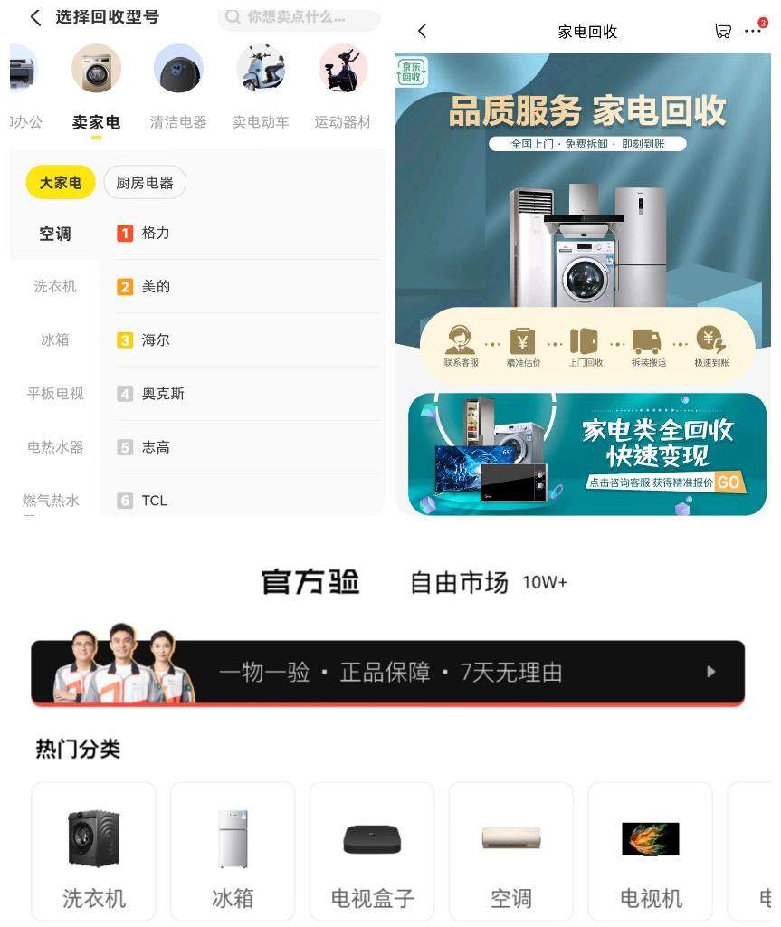 《行动方案》发布后,各大电商平台APP都更新了家电回收板块。