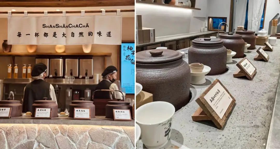 当然,这不是山野风、山系风第一次吹入餐饮圈,嗅觉敏锐的新茶饮赛道早出了几个山系品牌,像开在成都的李山山茶事,主打质朴的瓦煲奶茶,还有茶月山、夏摘山、去茶山等等,都是复归返山林的调调。