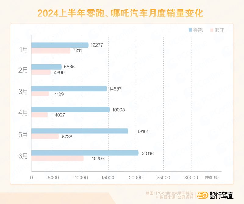 今年上半年,零跑累计交付86696辆,同比大增94.8%,完成年度目标25万辆的34.6%。其中,6月交付20116辆,这也是零跑首次月交付破两万辆。