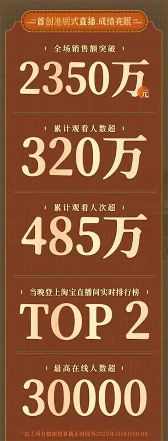 与此同时TVB亦将电商作为新切口,先后入驻抖音、淘宝电商平台开启直播带货业务,寻找新的收入增长点。去年3月的淘宝直播带货首秀创造了GMV2350万元的优异成绩,第二场GMV更高达7320万元。而电商方面的亮眼表现,也一度帮助TVB股价大涨。