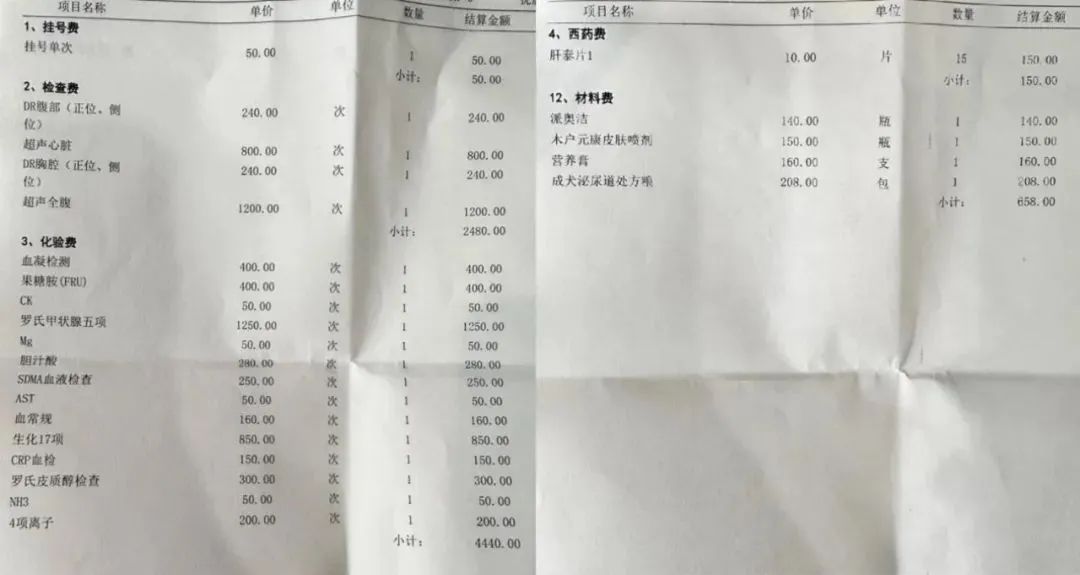 另一名宠物主,在一次带自家的猫看病时,提前团购了一个380元的检查套餐,到了医院后医生又列出了不少额外的术前检查项目,需要缴纳700多元。