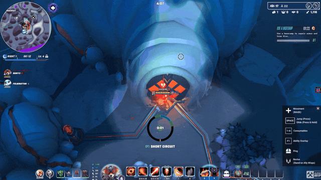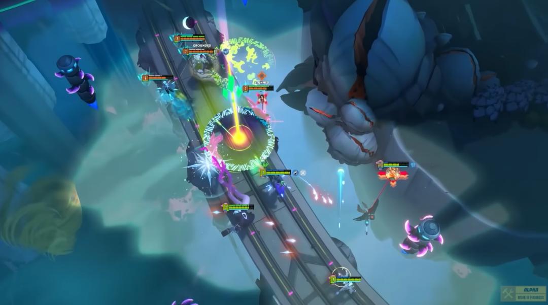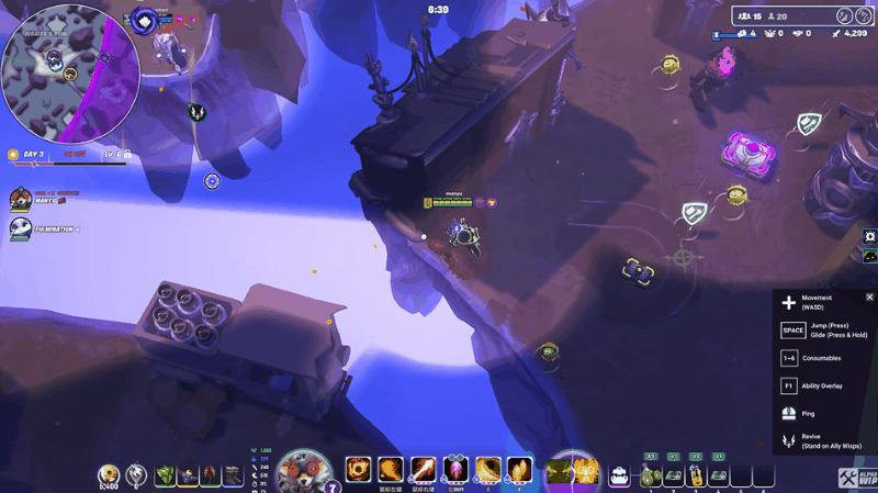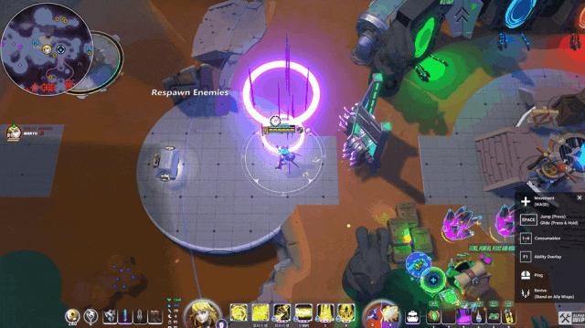 但是《SUPERVIVE》的操作方式又不像是传统MOBA,反而更接近射击RPG。游戏甚至加入了Z轴的概念,玩家可以进行跳跃、在空中滑翔飞行。如果玩家在飞行过程中被攻击后会陷入眩晕状态,在掉落至深渊则会直接死亡。