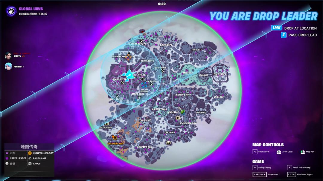 在《SUPERVIVE》中,每局游戏的资源点都会发生变化。玩家可以直接通过地图知晓哪个位置是野怪刷新点、或者去哪里可以获得较高等级的装备和「超能力」技能。甚至在飞船上的时候,如果有队伍率先离开飞船,玩家也可以知晓他们选择降落在什么地方。
