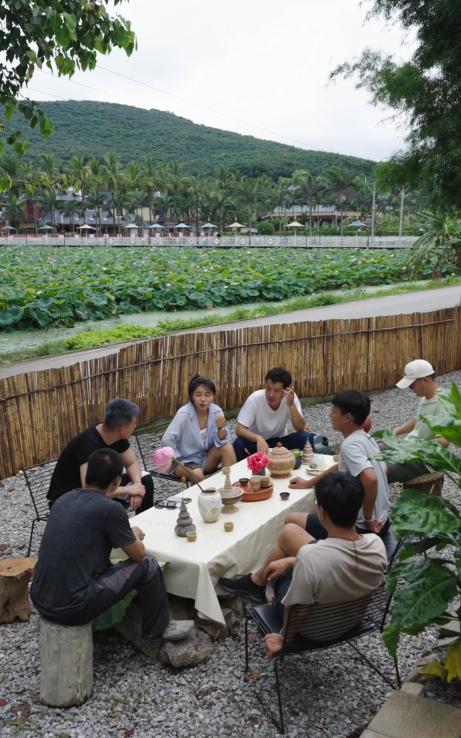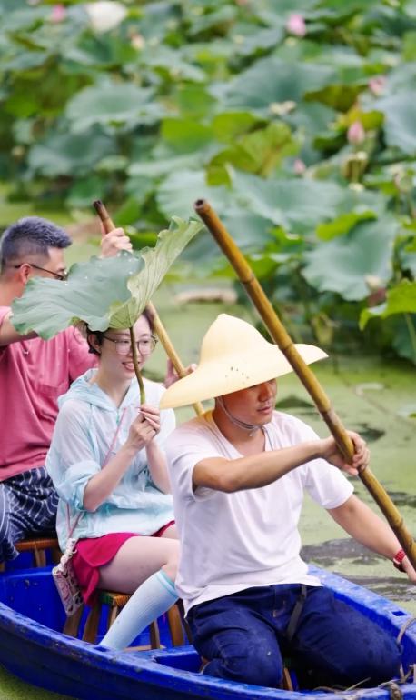 入住的青年人一起去荷塘采荷