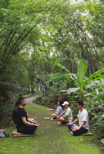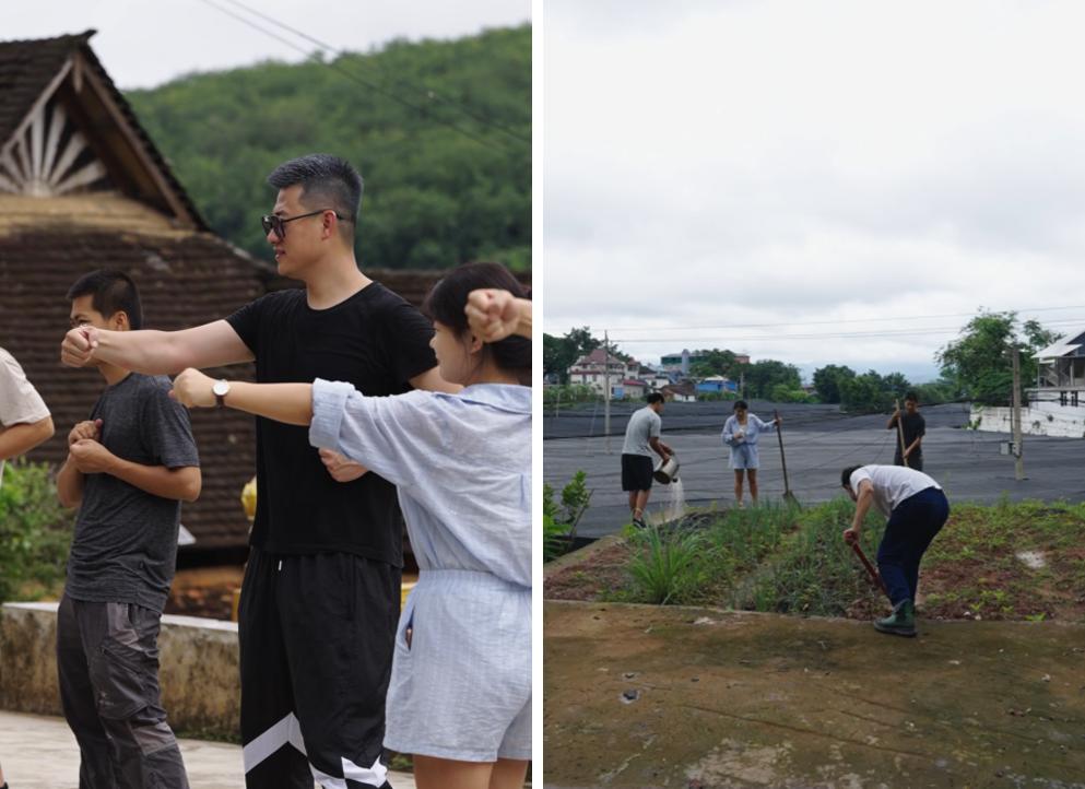 大多数人会7点多起来,去跑步运动一下,少部分人会睡到中午。我们也会组织一些活动,打个八段锦、种种地、去瀑布边徒步,学学拳术或者是大家一起打坐,晚上会举办音乐会,弹个吉他,敲敲手鼓……