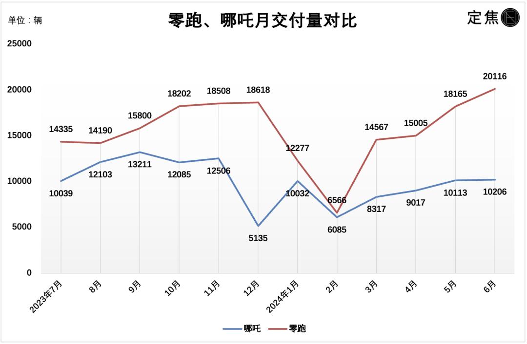 二梯队的品牌中,零跑最近表现不错,6月交付20116辆,首次过2万。