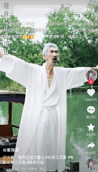 《长安三万里》上映期间,演员车保罗再现片中晚年李白吟诵“轻舟已过万重山”的高光片段,在抖音获得超1000万次点赞。随后,“轻舟已过万重山”成为热议话题,不少观众也因此打算“二刷”乃至“N刷”这部电影。