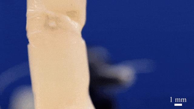 造出来的人造「皮肤」不仅具有良好的弹性,还可以随着手指动作起皱和拉伸,与真实手指给人的感觉非常接近。