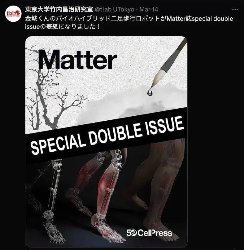 今年 1 月,他还曾提出过仿人体肌肉来制造机器人双腿,打造出机械为骨、人体组织为皮肉的机械结构生物混合机器人。