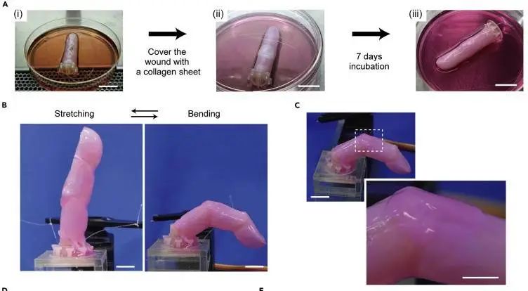 2022 年,他和他的团队曾经利用胶原蛋白和真皮成纤维细胞,制作类人类真皮层手指。